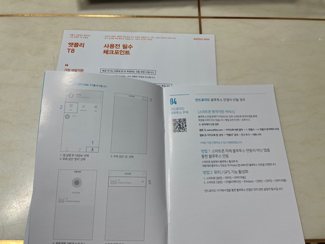 포장된 상자 안에 사용방법도 나와있으며, 핸드폰과 연결하기 위해 설치해야 하는 어플과 연동방법까지