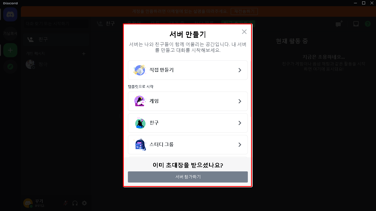 서버를 만드는 목적으로 게임, 친구 모임, 스터디 그룹 등을 이미 있는 템플릿으로 시작하셔도 되고