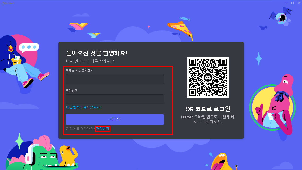 처음 디스코드를 사용하시는 분이라면 가입하기를 눌러주시고 그렇지 않다면