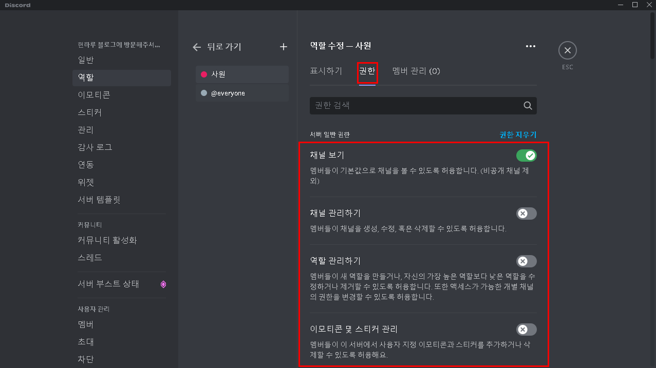 기능이 너무 많지만 여기서 재밌는 기능 하나만 보여드리자면 역할 설정입니다.