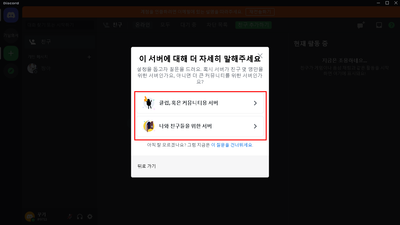 서버 선택을 끝내셨다면 이제 서버의 이름과 사진을 올려주세요!
