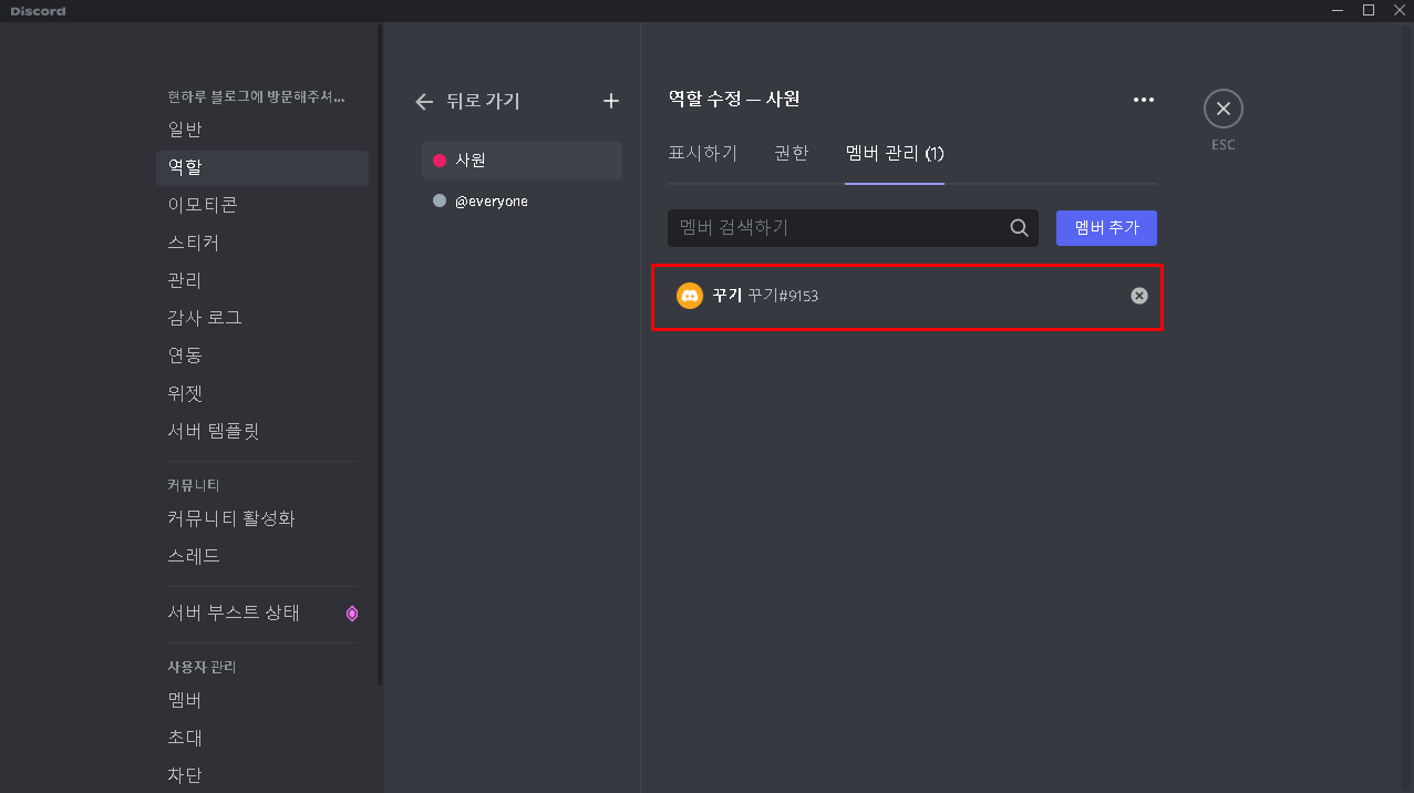 저는 일단 서버에 있는 꾸기님이라도 사원으로 추가하겠습니다...