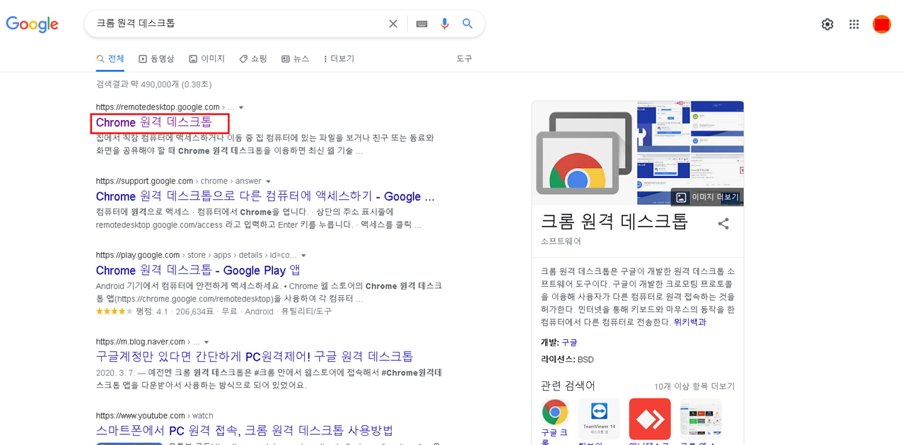 먼저 검색 포털에 크롬 원격 데스크톱이라고 검색을 해주세요.