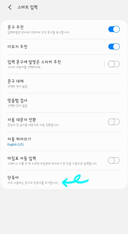 제가 알려드릴 정보는 스마트 입력, 단축어 기능인데요!
