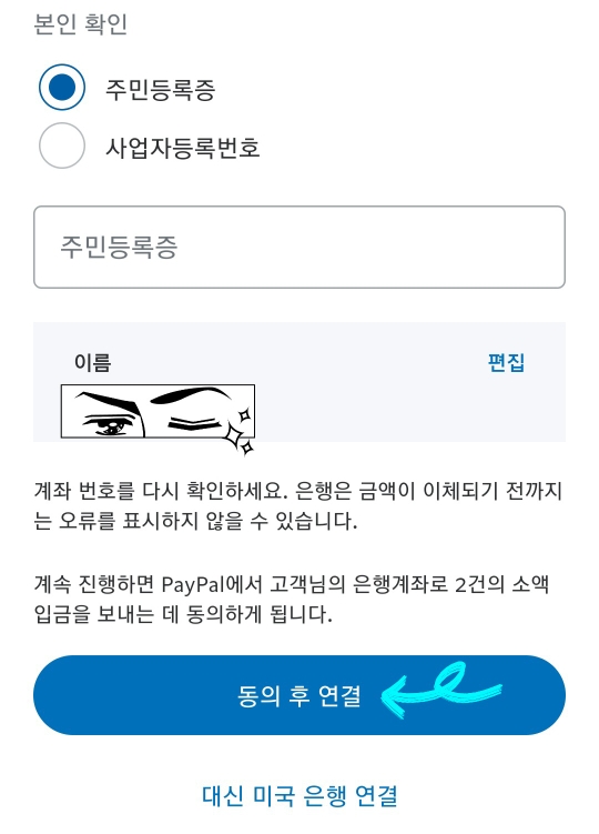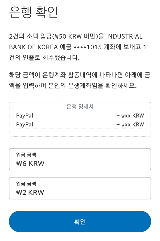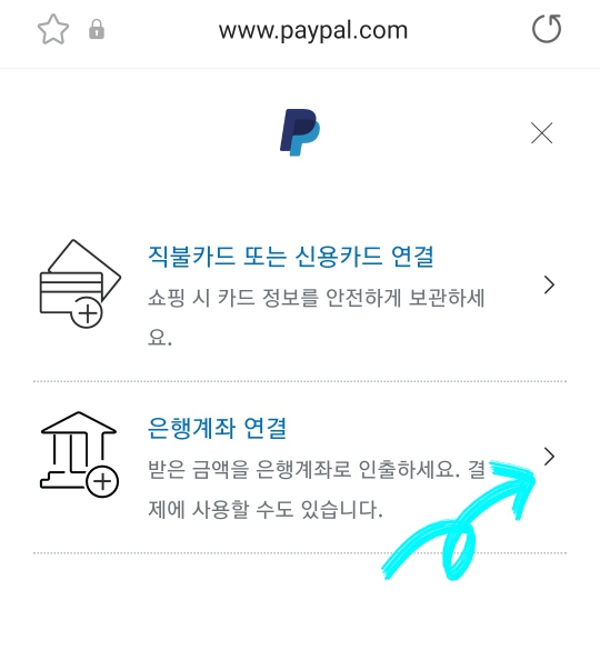 위 과정으로 페이팔 회원가입을 완료하셨다면 아래는 은행계좌연결 방법을 안내해 드리겠습니다.