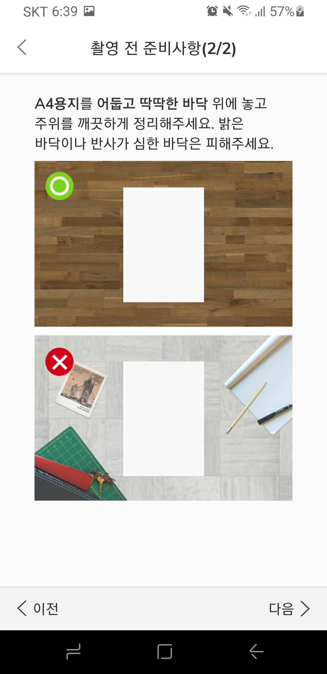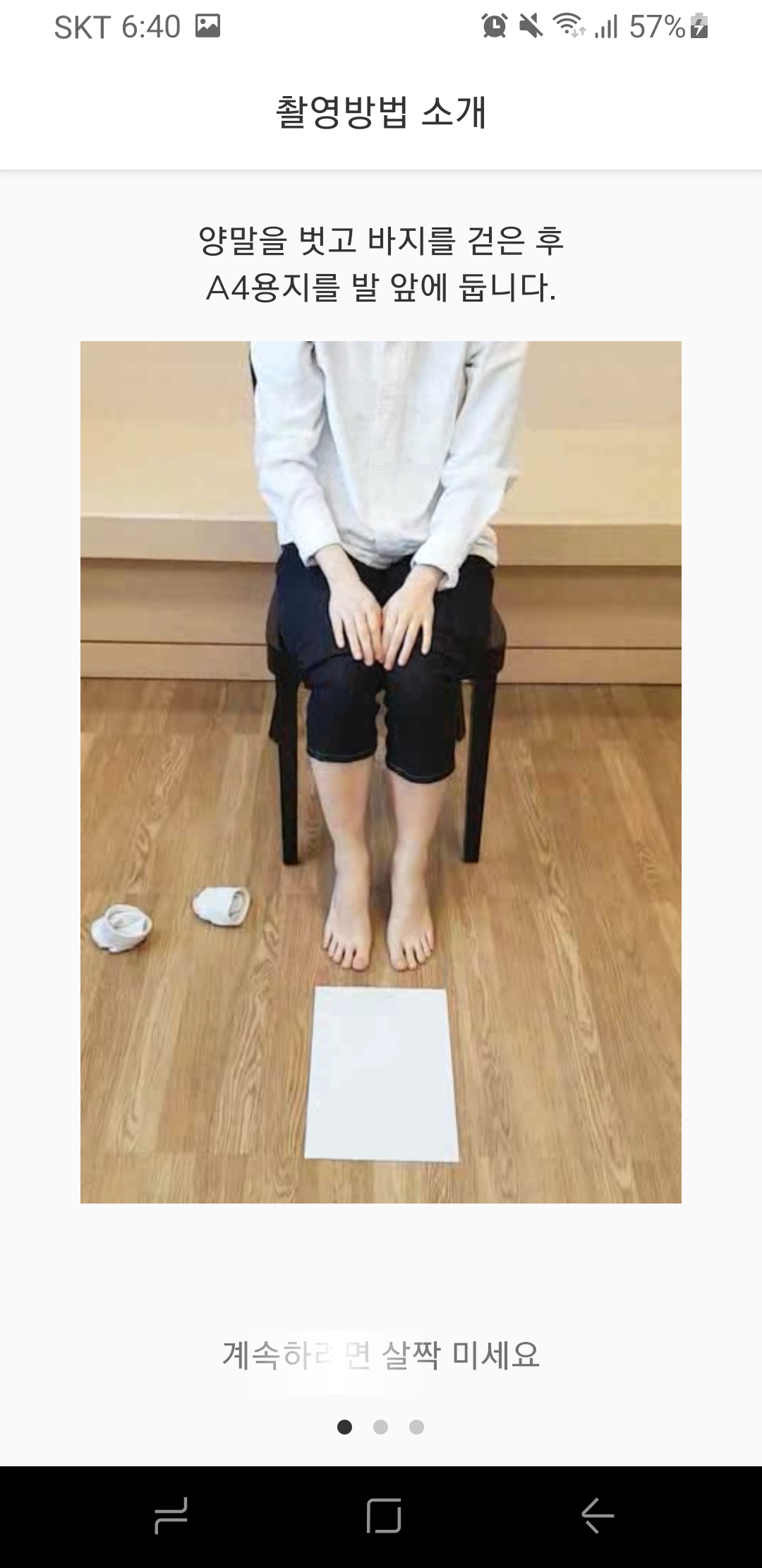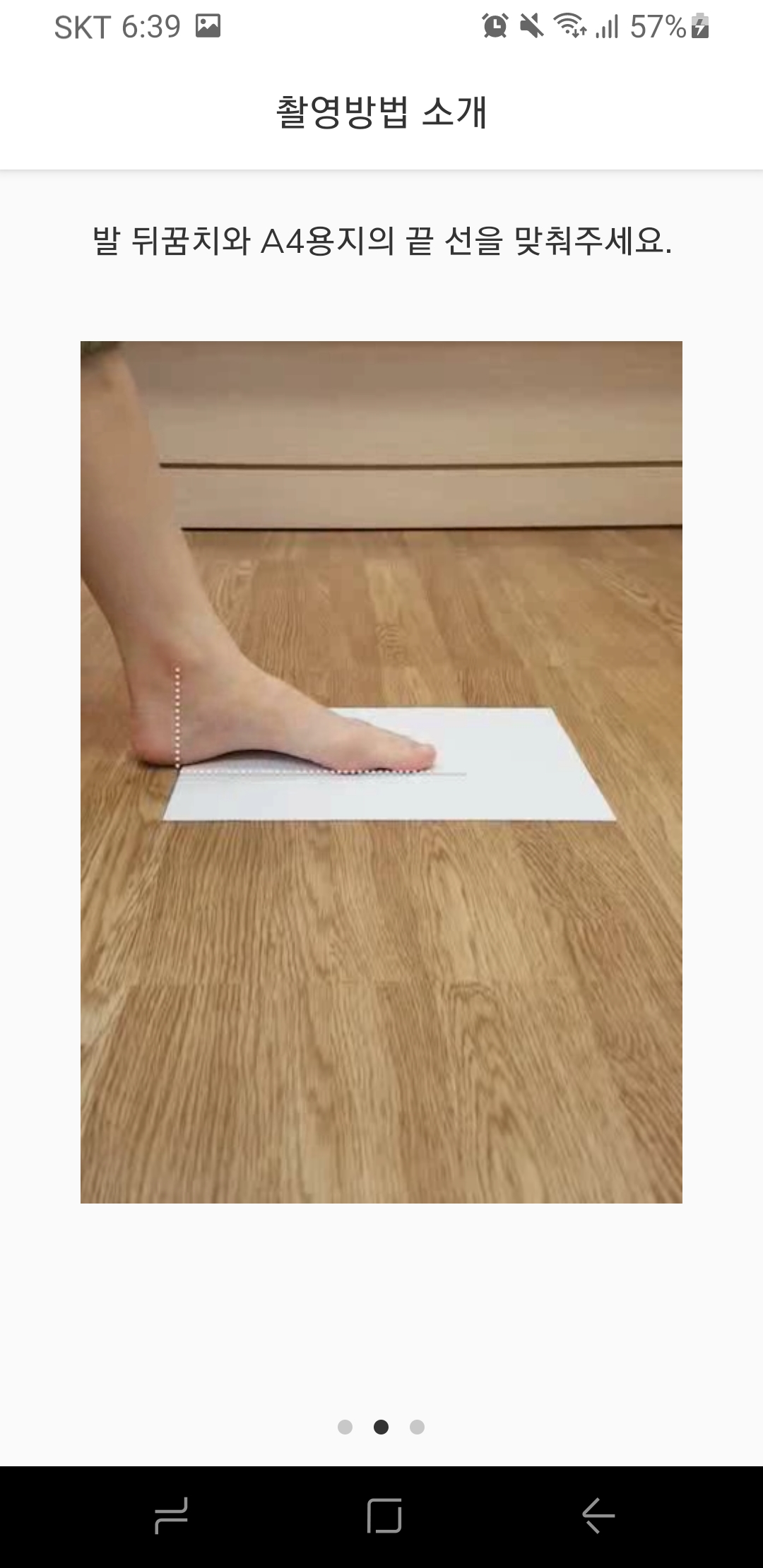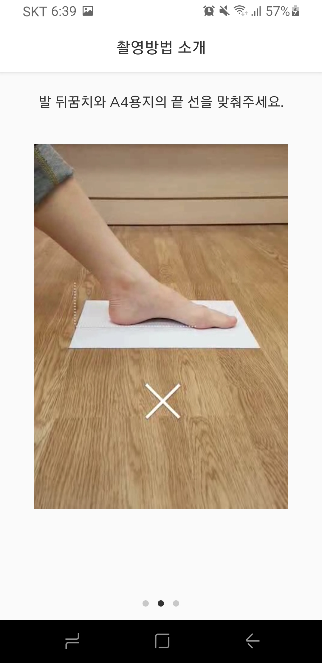 발과 A4용지를 끝선에 맞추셨다면 핸드폰을 통해 촬영을 시작해주세요!