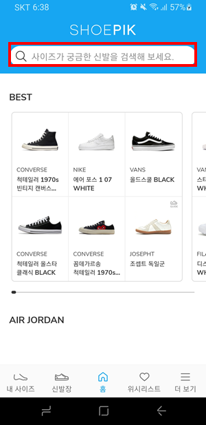 본인의 신발 사이즈를 슈픽을 이용해서 찾아보자!