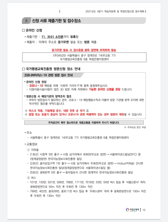 학습자등록, 학점인정에 필요한 제출서류