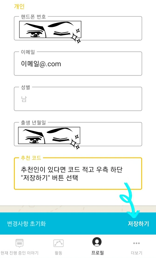 - 추천인이 있다면 추천 코드를 입력해주세요.
