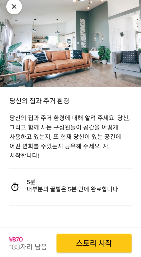 183석이 남은 당신의 집과 주거 환경에 관한 설문조사에 참여했습니다.