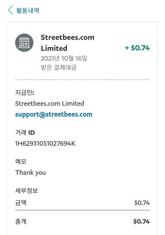 최근 지급됨을 확인하신 후 페이팔에 들어가서 870원이 정상적으로 입금이 되었는지 확인해주세요!