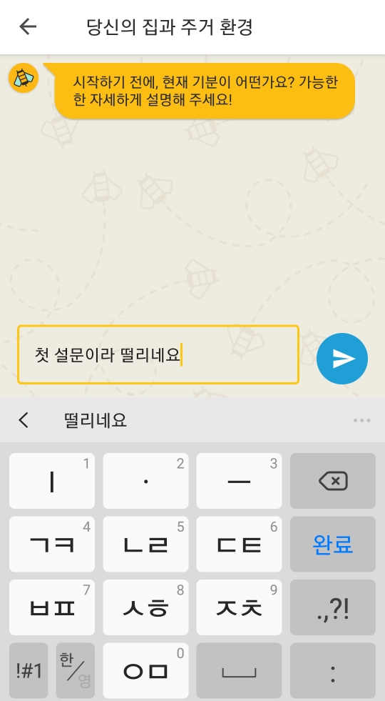 설문은 객관식, 주관식으로 섞어서 문항이 나오고 대화 형식으로 진행돼서 지루하지 않습니다.
