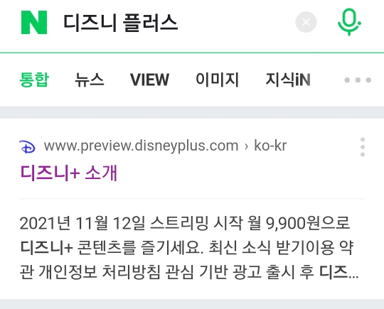 네이버에서 디즈니 플러스라고 검색하면 브라우저 최상단에 디즈니+ 소개라고 돼있는 사이트로 들어가셔도 됩니다.