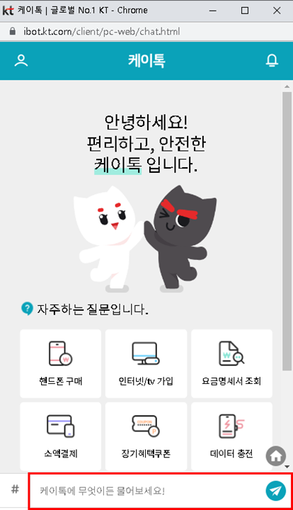 케이톡 챗봇을 알아보기 전에 먼저 케이티 홈페이지에 접속해 주시기 바랍니다.