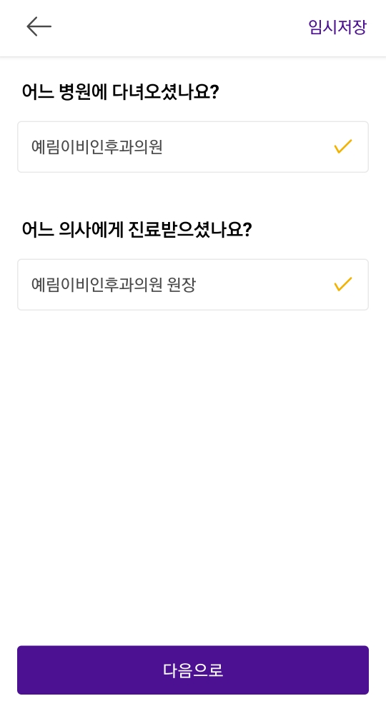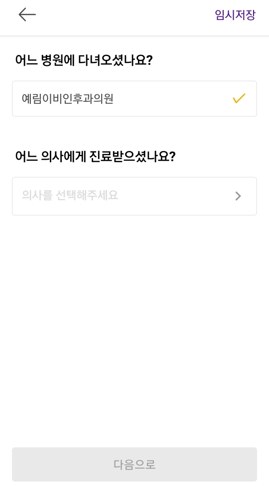 병원 선택 시 병원은 자동으로 이름이 등록되고