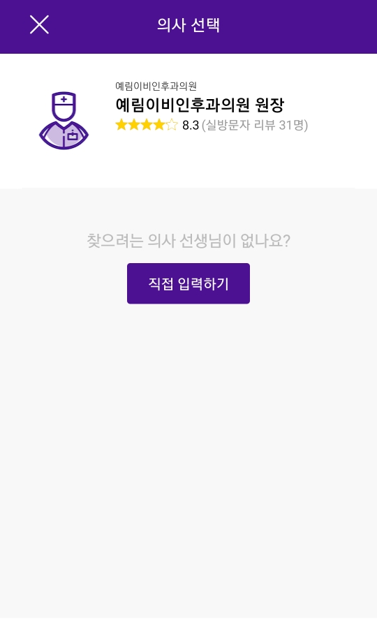 찾으시는 의사 선생님이 없으시다면 직접 입력하기로 적어주세요!