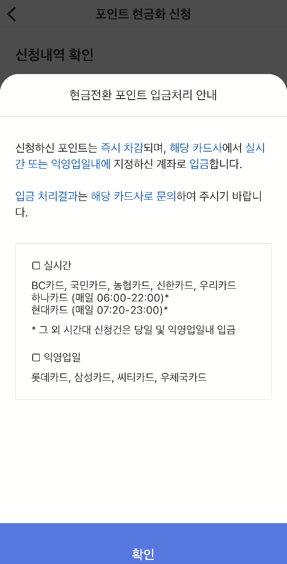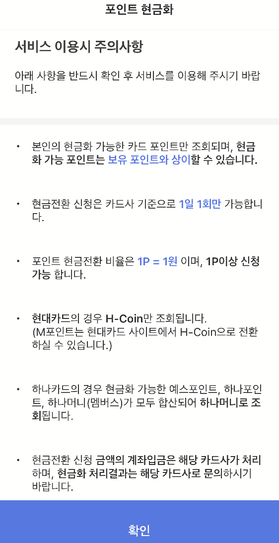- 카드포인트를 한번에 조회하여 현금으로 전환이 가능한 현금화 서비스
