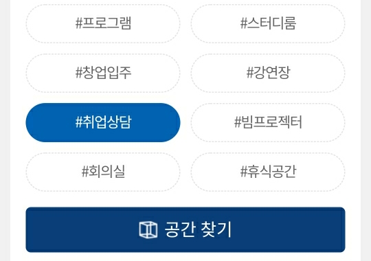 장소 대여할 지역을 지도에서 설정 후 10가지 해시태그(#)중 원하는 것을 선택해서 공간 찾기를 눌러주세요. (개수 선택의 제한은 없습니다.)