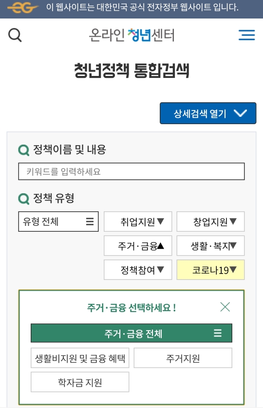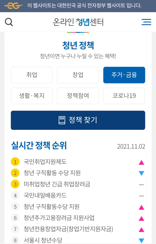 사진에선 주거/금융으로 정책을 찾아보겠습니다.