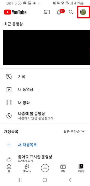 유튜브(어플 기준) 우측 상단 계정 아이콘 선택