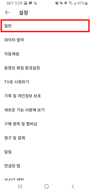 설정 - 일반 선택
