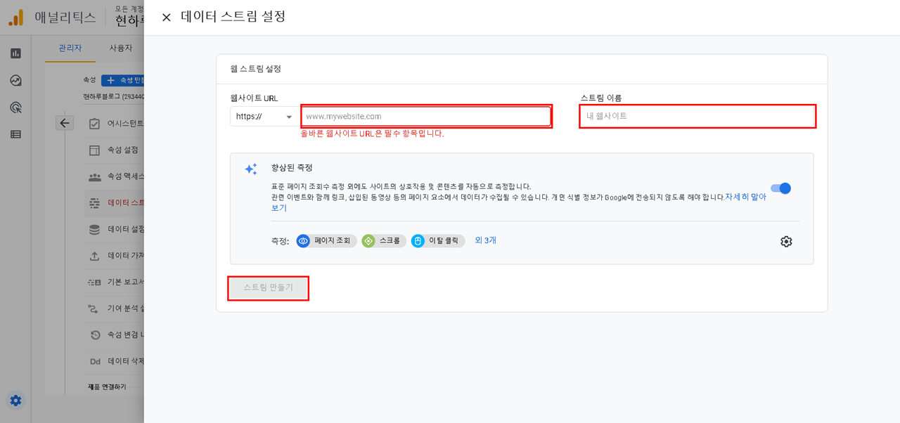 스트림 만든 이후 측정 ID 복사(티스토리 연동 시 필요함)