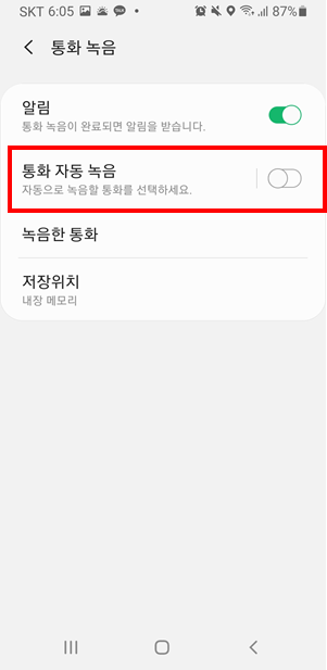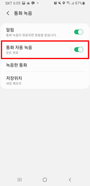 통화 자동녹음 - 자동녹음 활성화