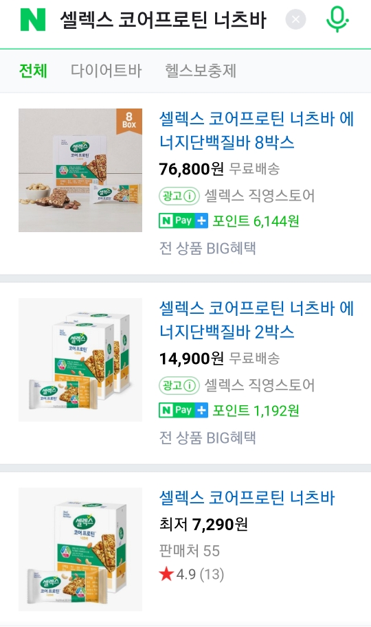 <셀렉트 코어 프로틴 너츠바 네이버 스토어 링크>