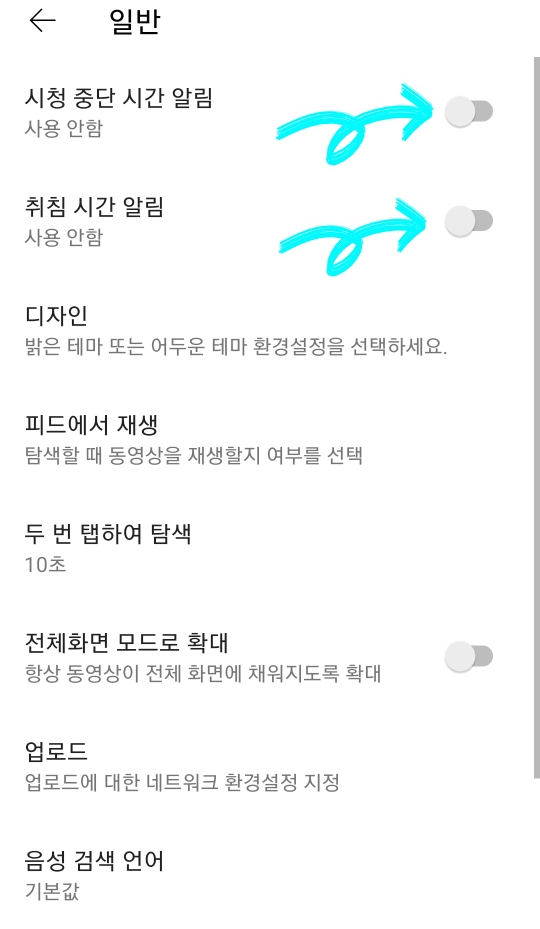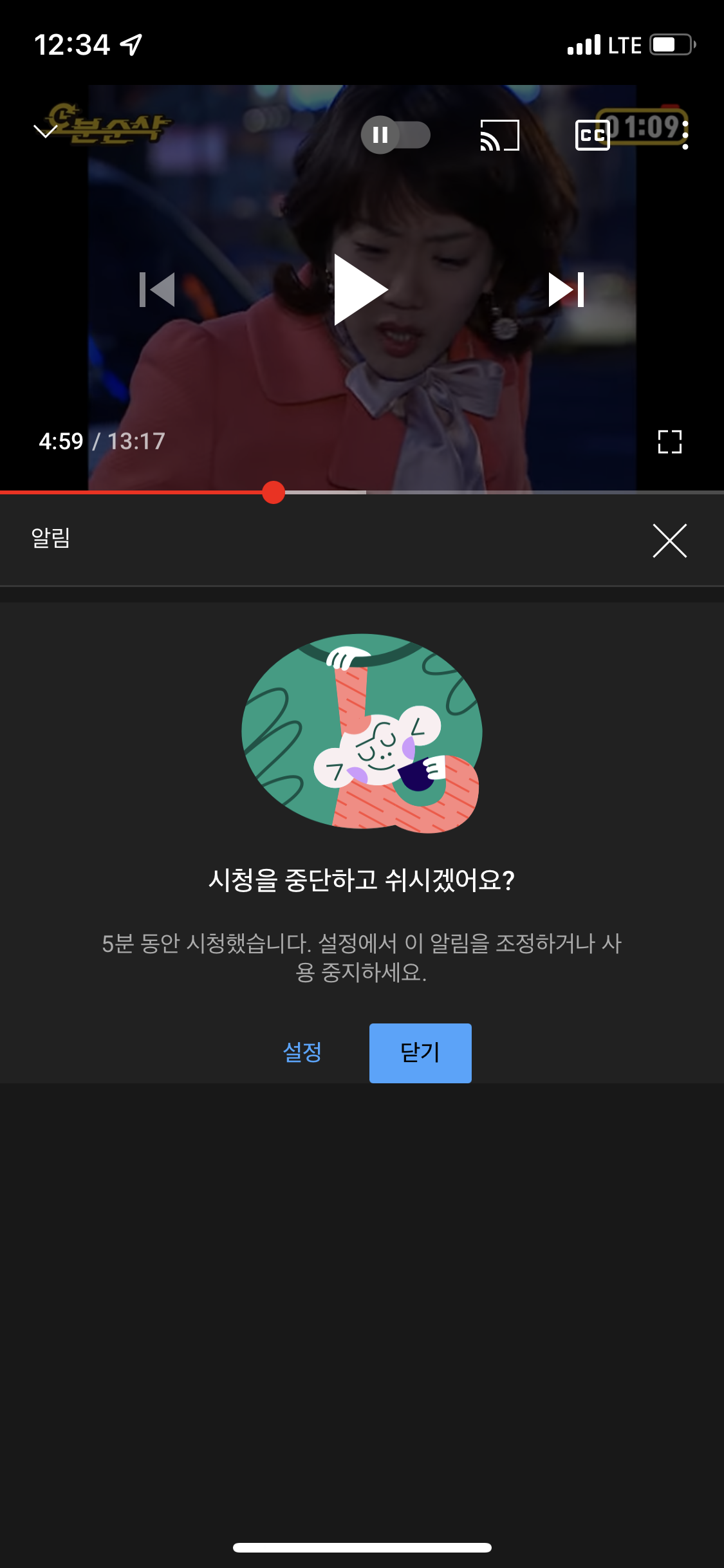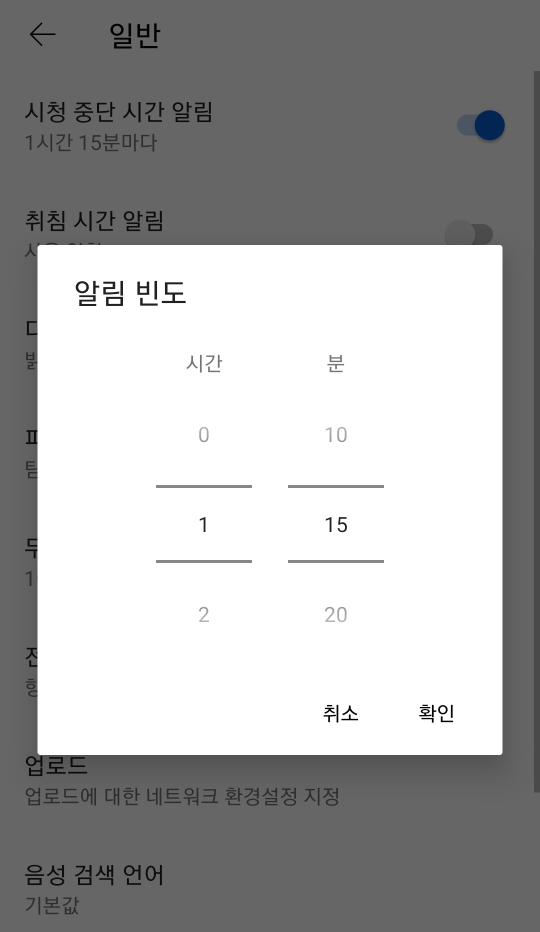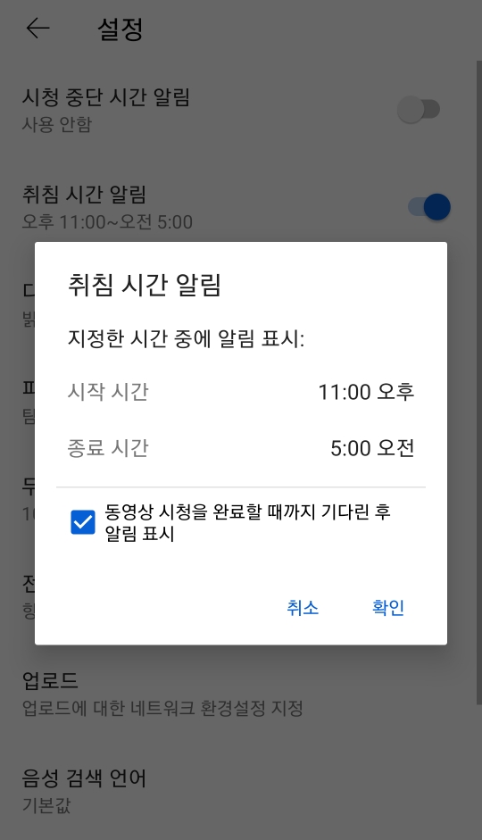 유튜브 시청 중단 시간 알림, 취침 시간 알림?