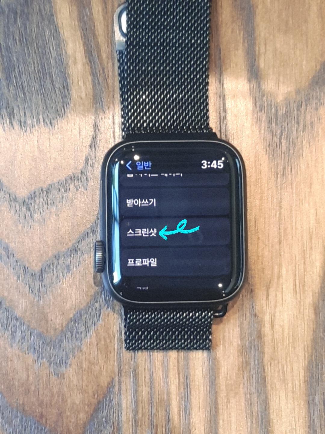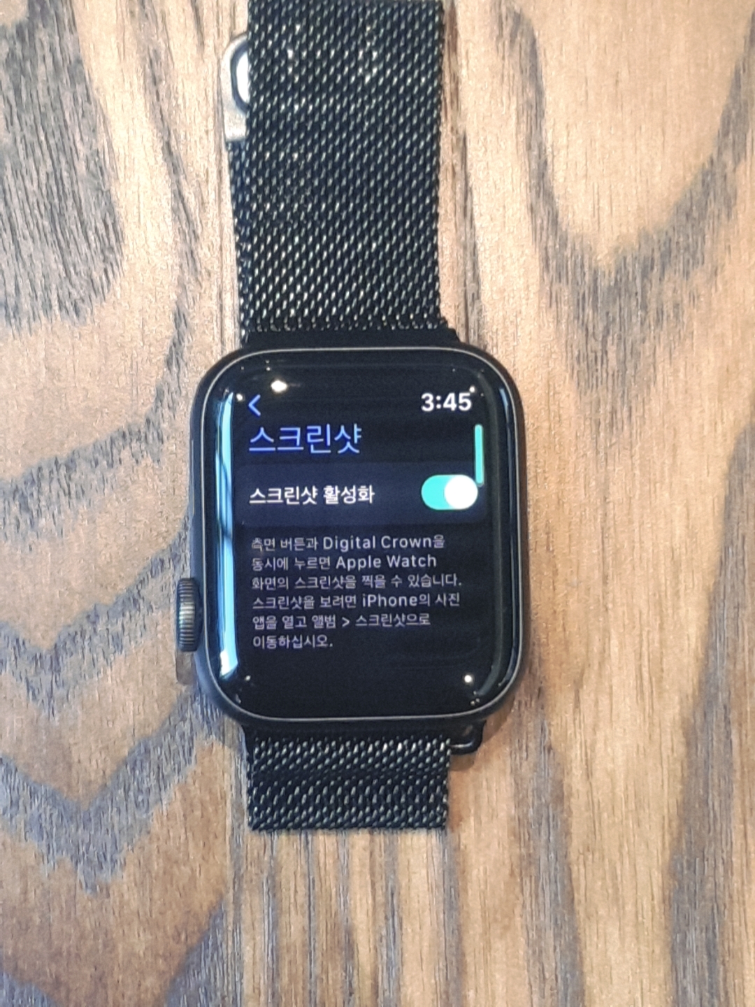 스크린샷 설정 이후 애플워치 측면버튼과 디지털크라운을 동시에 누르면 스크린샷을 찍을 수 있습니다.