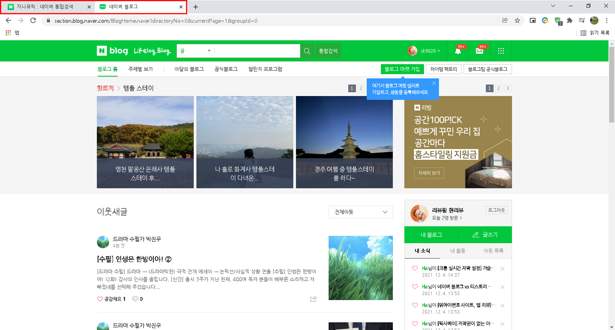 지금 제 블로그를 보고 계시다면 한번 닫기 누른 후에 방금 알려드린 단축키를 사용해보세요!