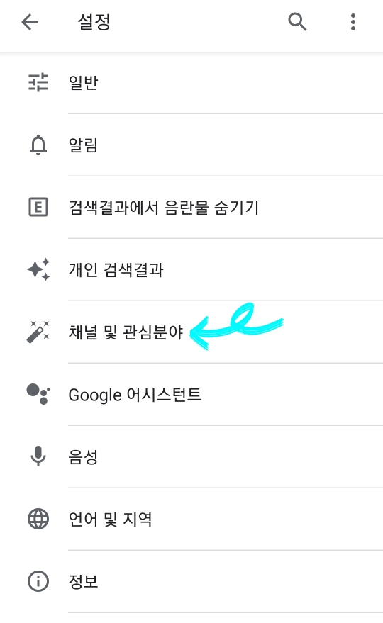 * 관심분야 설정은 구글 브라우저에만 있습니다.