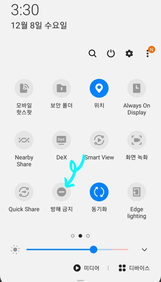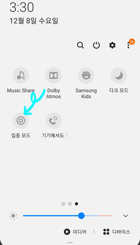 따라서 방해금지 모드나 집중 모드도 무음 설정과 같이 한 번의 터치로 쉽게 설정할 수 있으니 아래 사진과 설명을 참고하시길 바랍니다.