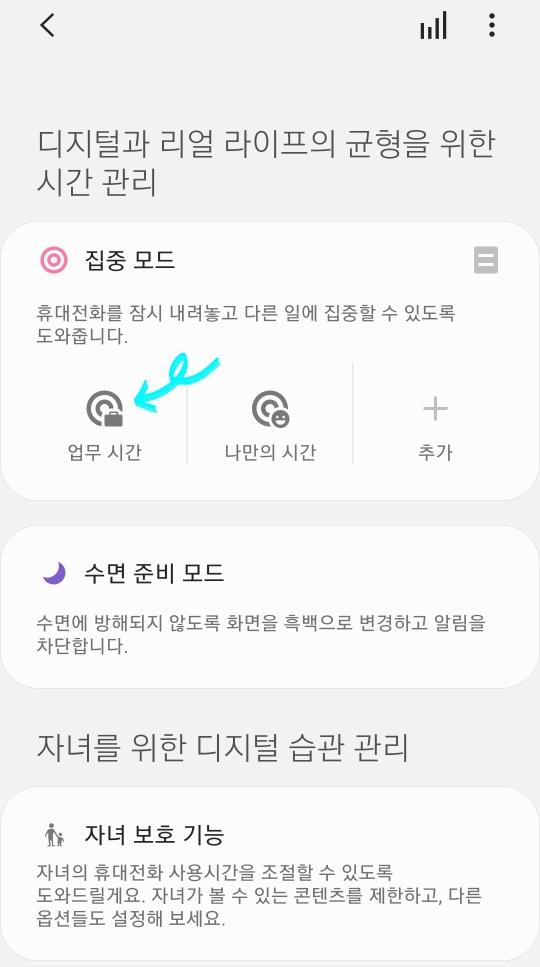 집중 모드 설정 방법
