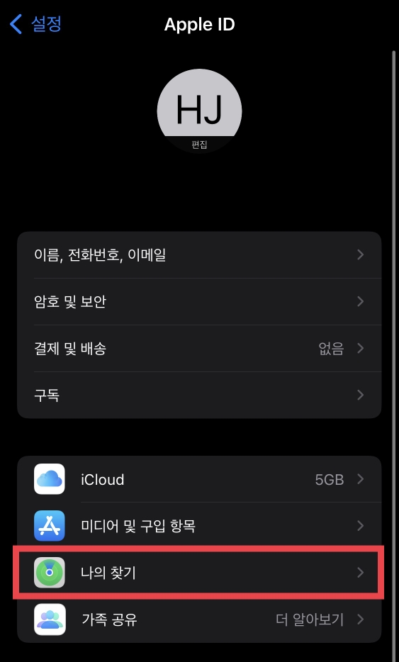 2. [아이폰 나의 찾기 앱 실행]