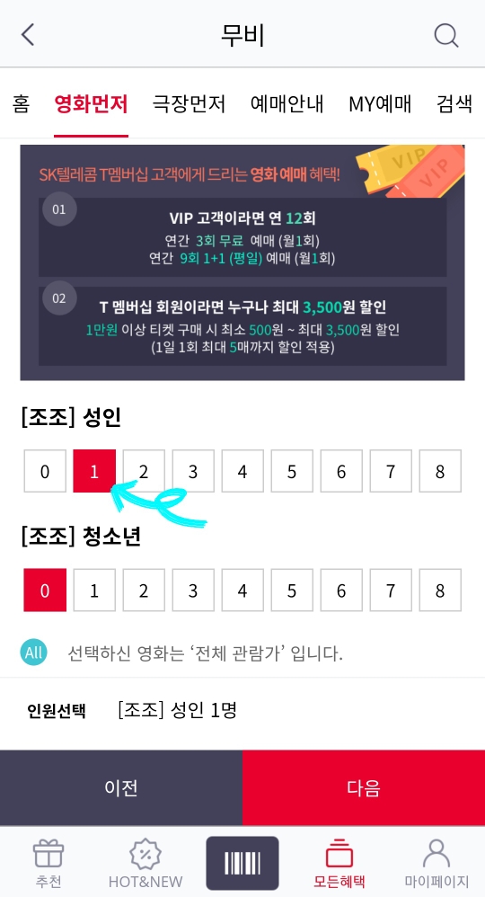 *이렇게해서 skt Vip Pick무료 영화예매 방법에 대해서 알아보았습니다.