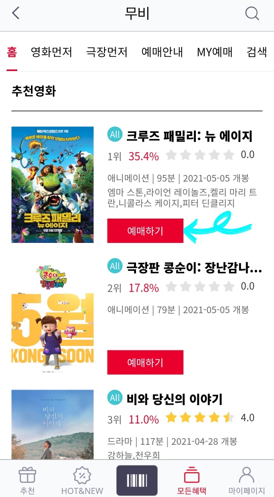 4. 그 후 관람하실 영화를 선택해주세요!