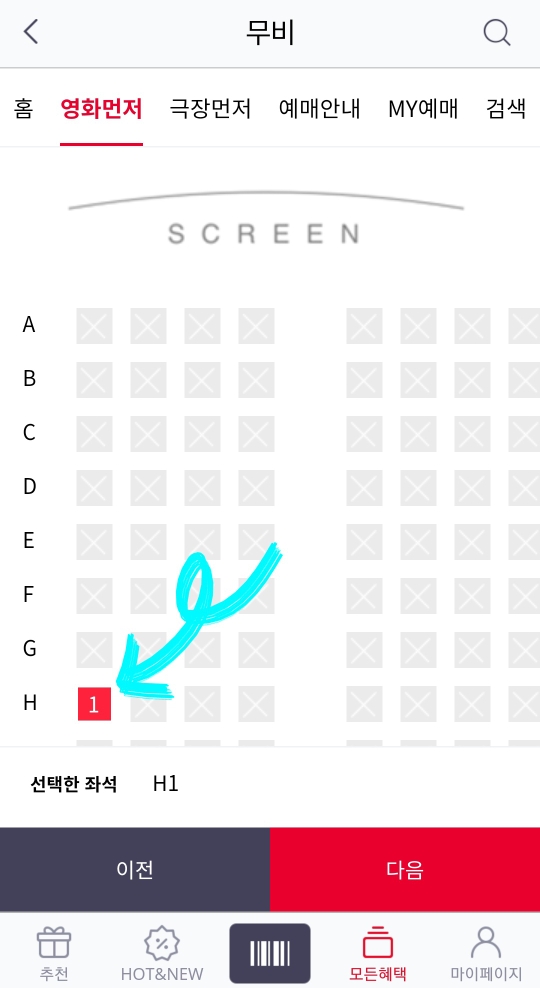 8. 관람하실 좌석을 선택해주세요!(h열 국룰)