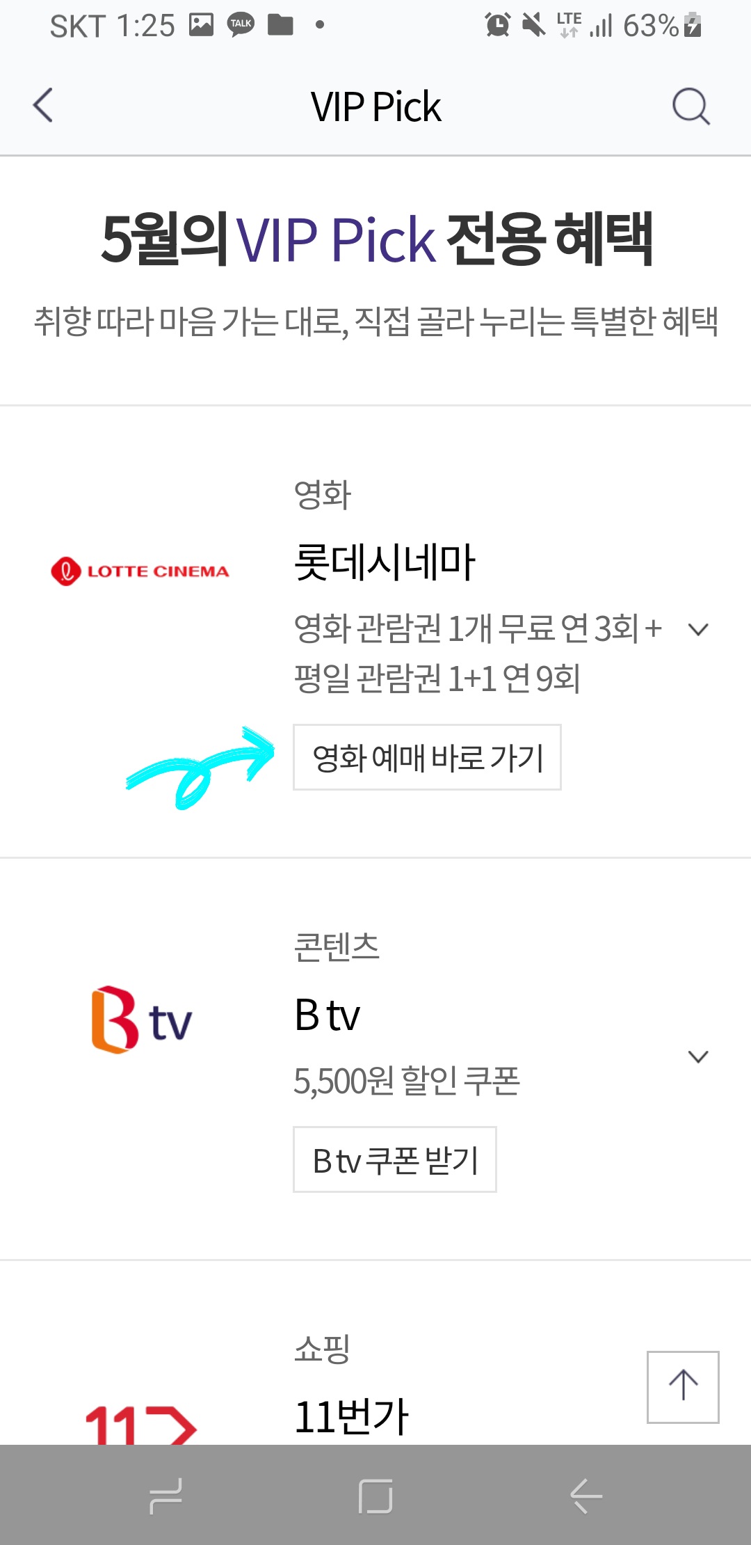 skt Vip Pick 롯데시네마 영화예매 방법