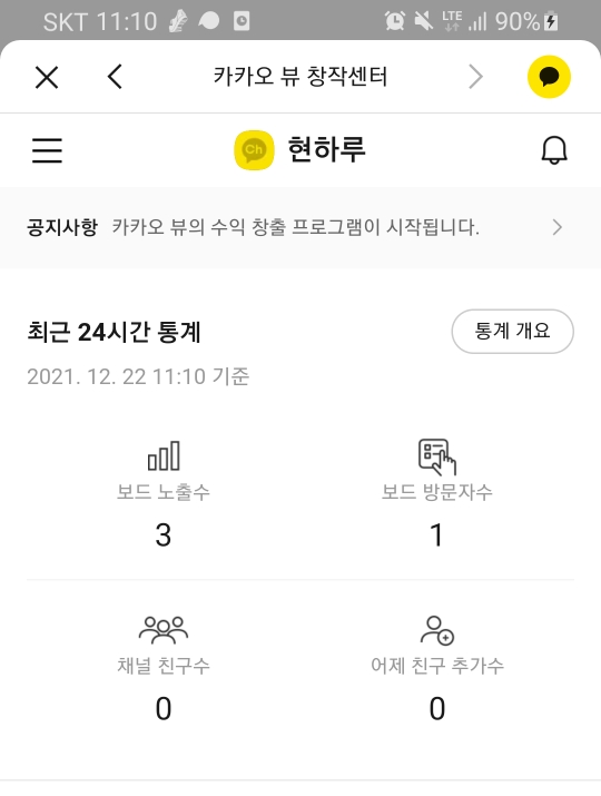 한마디로 유튜브 채널이나 블로그처럼 본인의 채널을 만들어서 이미 있는 콘텐츠나 새롭게 만든 콘텐츠를 담아서 카카오 뷰를 사용하는 사람들에게 다양한 정보를 줄 수 있다는 장점이 있는 서비스입니다.