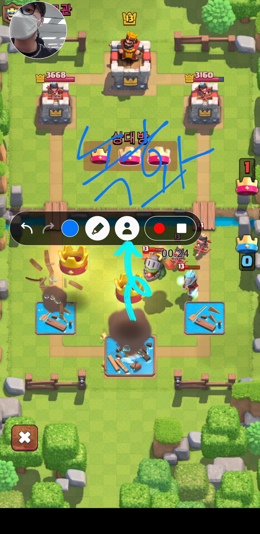 클래시로얄이라는 게임을 녹화한다는 가정하에 캡쳐화면을 담았습니다.