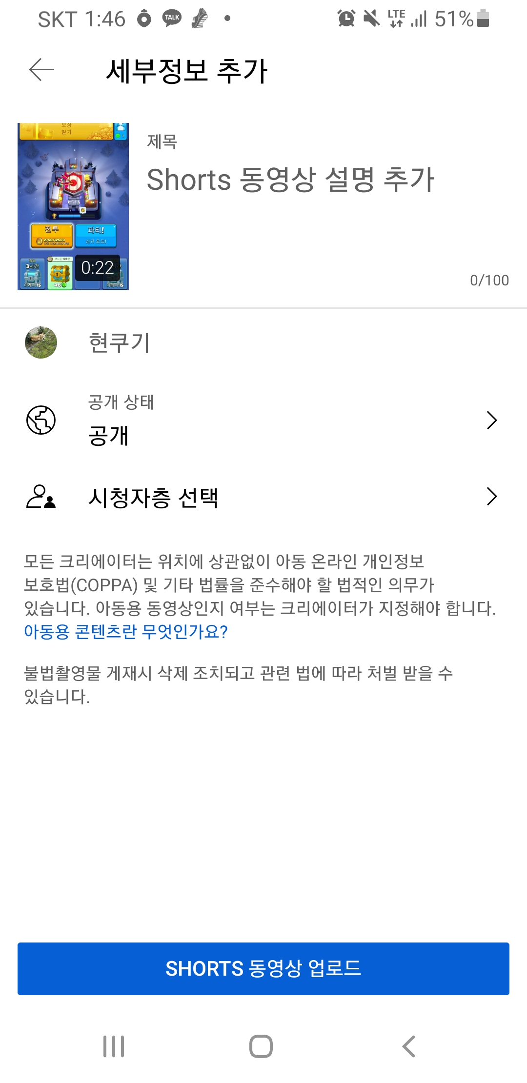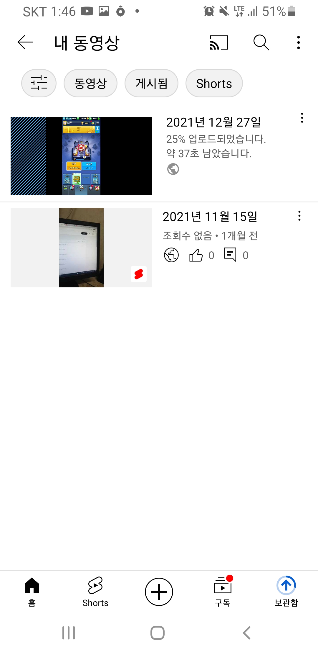 유튜브 SHORT 업로드
