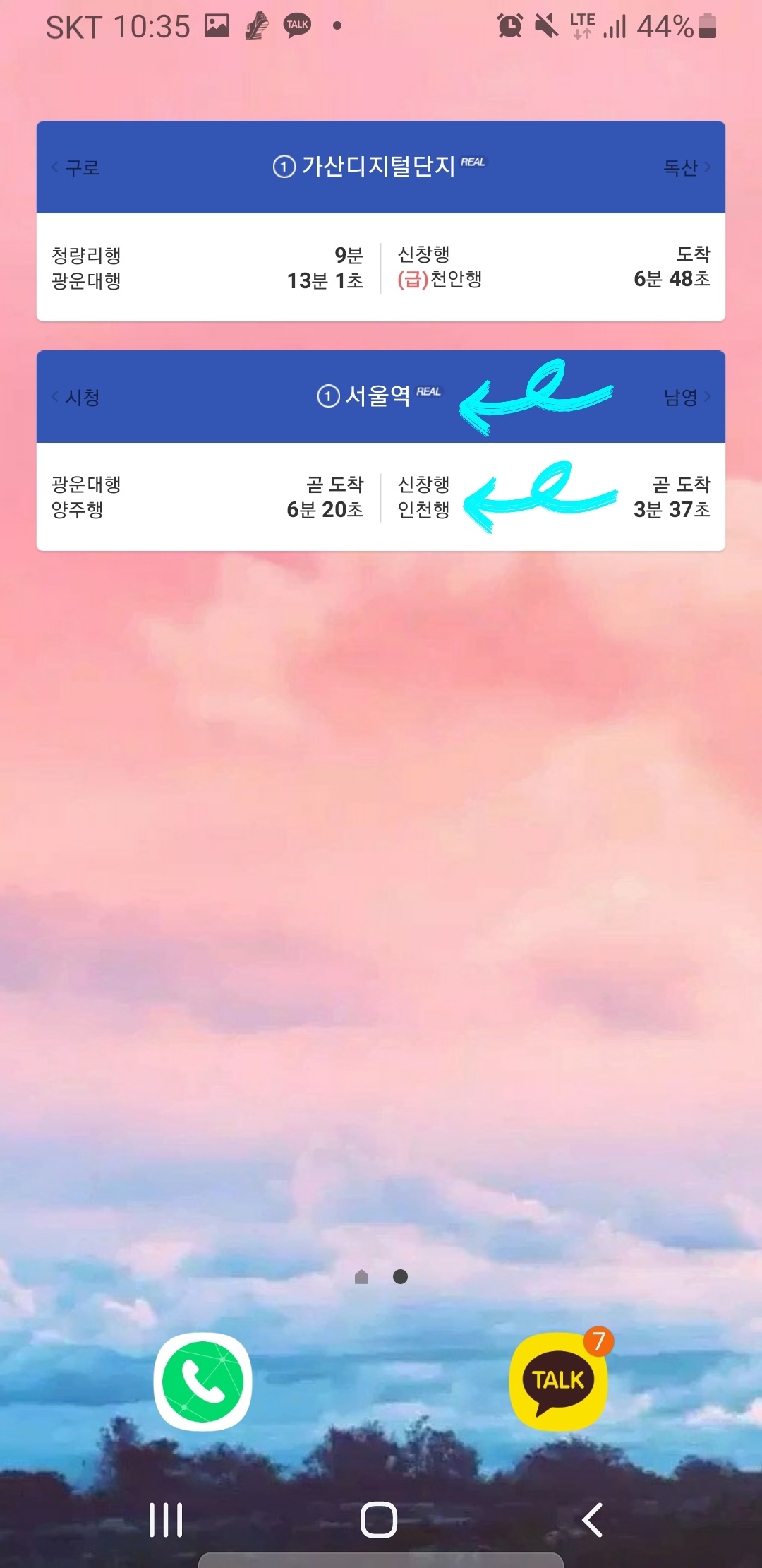 위젯을 바탕화면에 놓고 간편하게 터치만 해준다면 실시간 열차 정보를 확인할 수 있어서 번거로움을 덜 수 있었습니다.