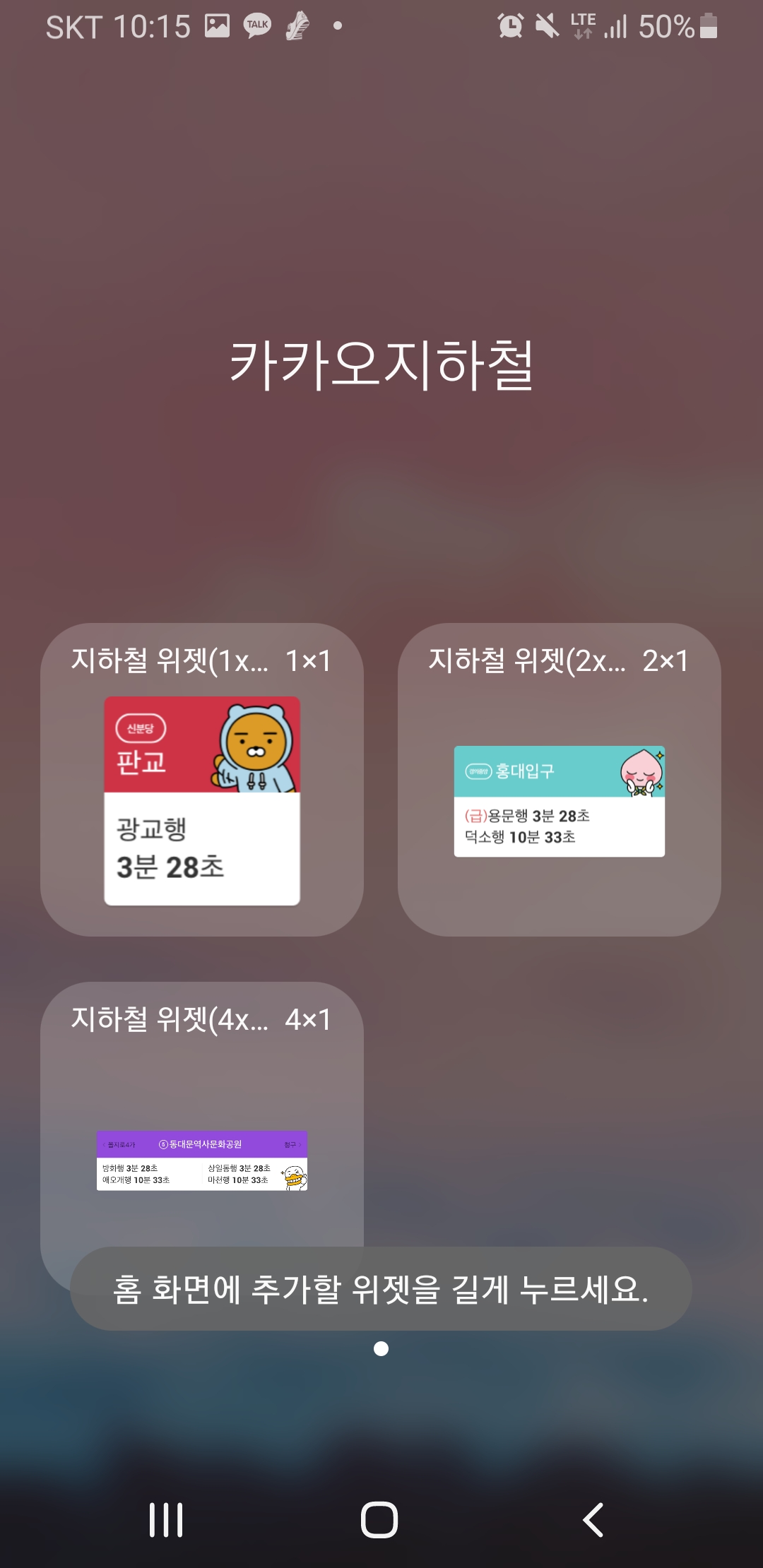 항상 앱을 실행시켜서 확인하다보니 번거롭기도 하고 조금 더 편한 기능이 없을까? 생각하다가 카카오 지하철 위젯을 찾게 되었습니다.