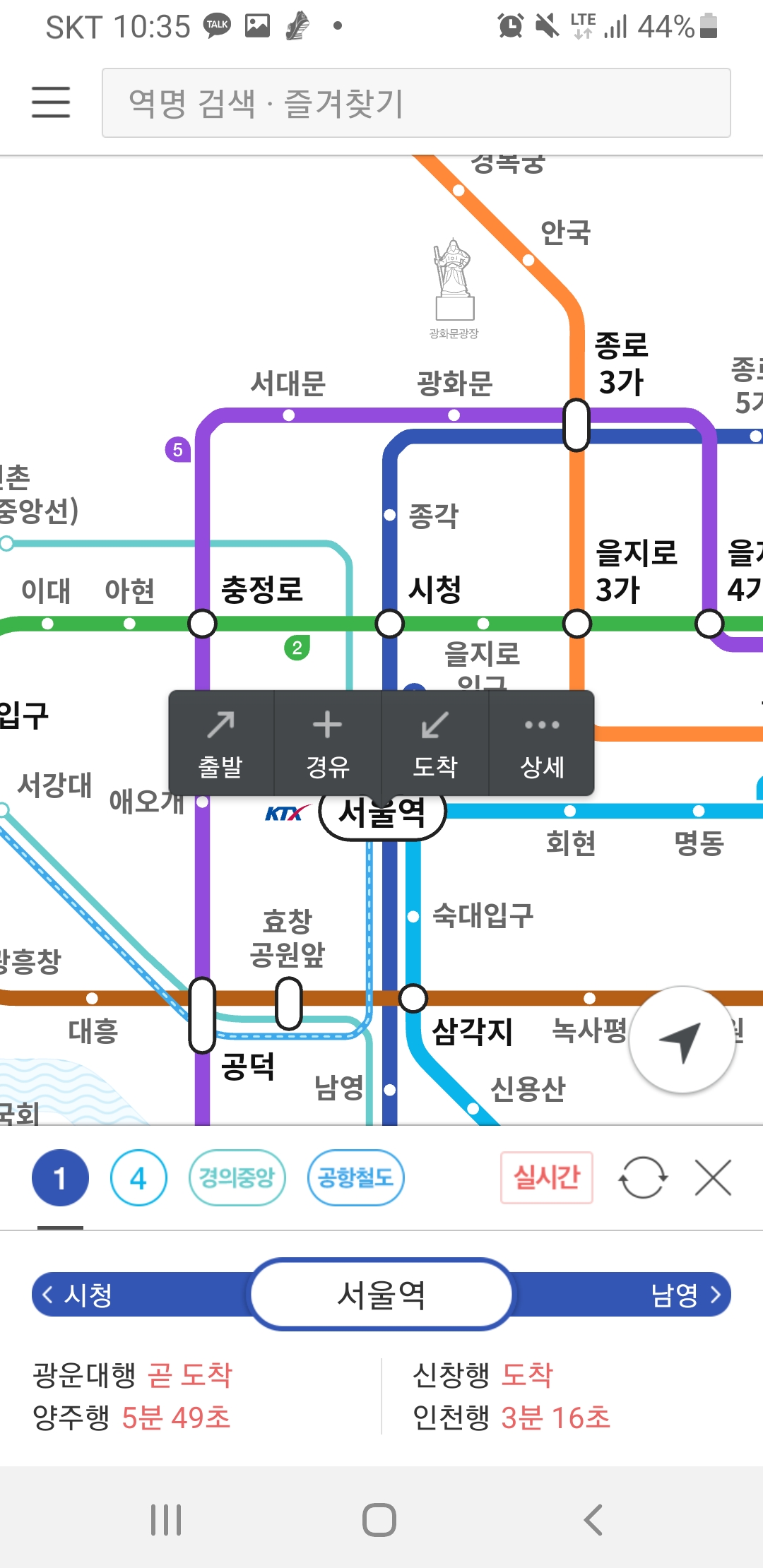 아침 출근길과 저녁 퇴근길에는 항상 카카오 지하철 앱을 실행시켜서 지하철역에 도착하는 열차의 정보를 확인하는 습관이 있는데요!