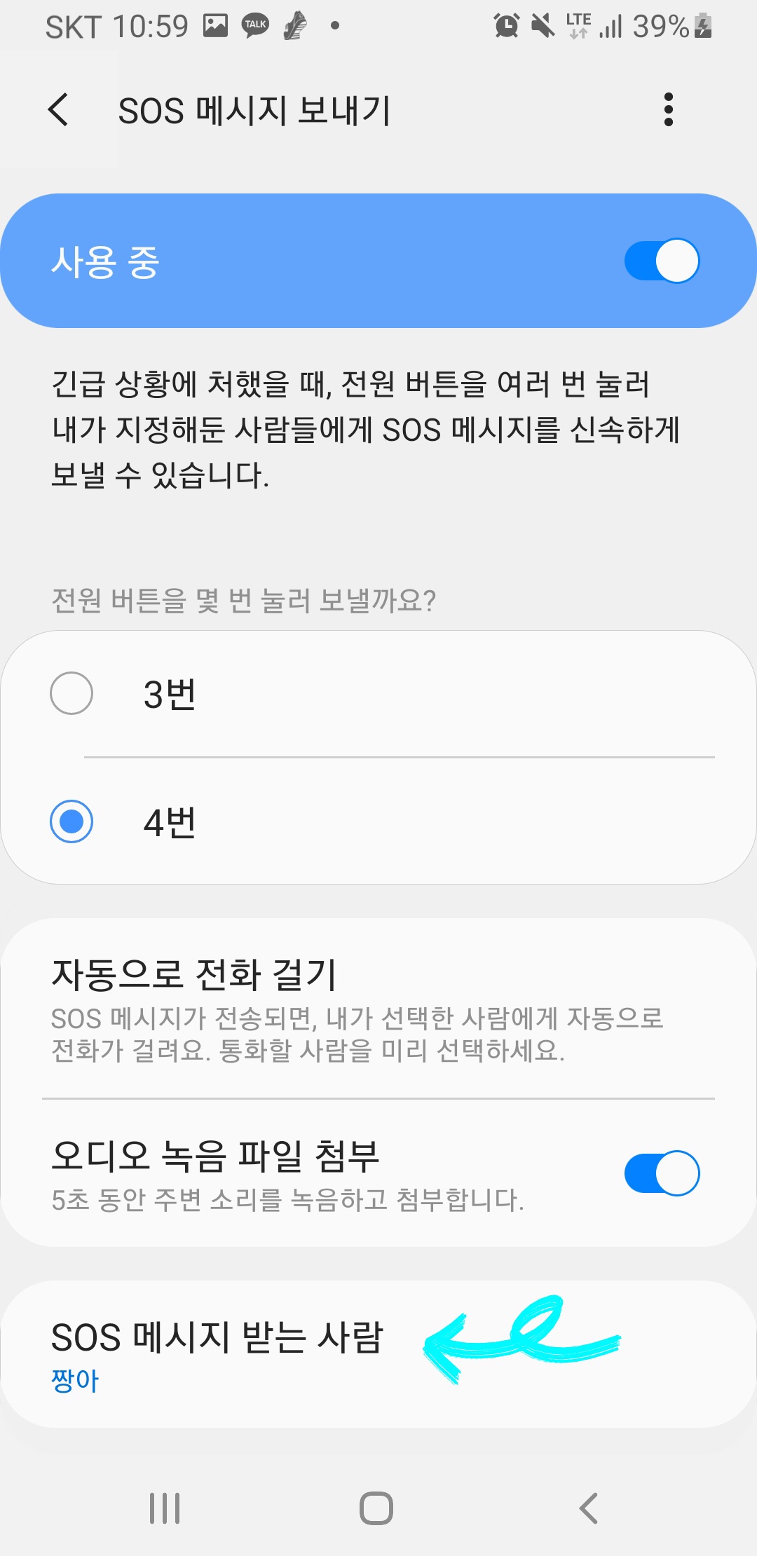 4. SOS 메시지 받는 사람 선택
