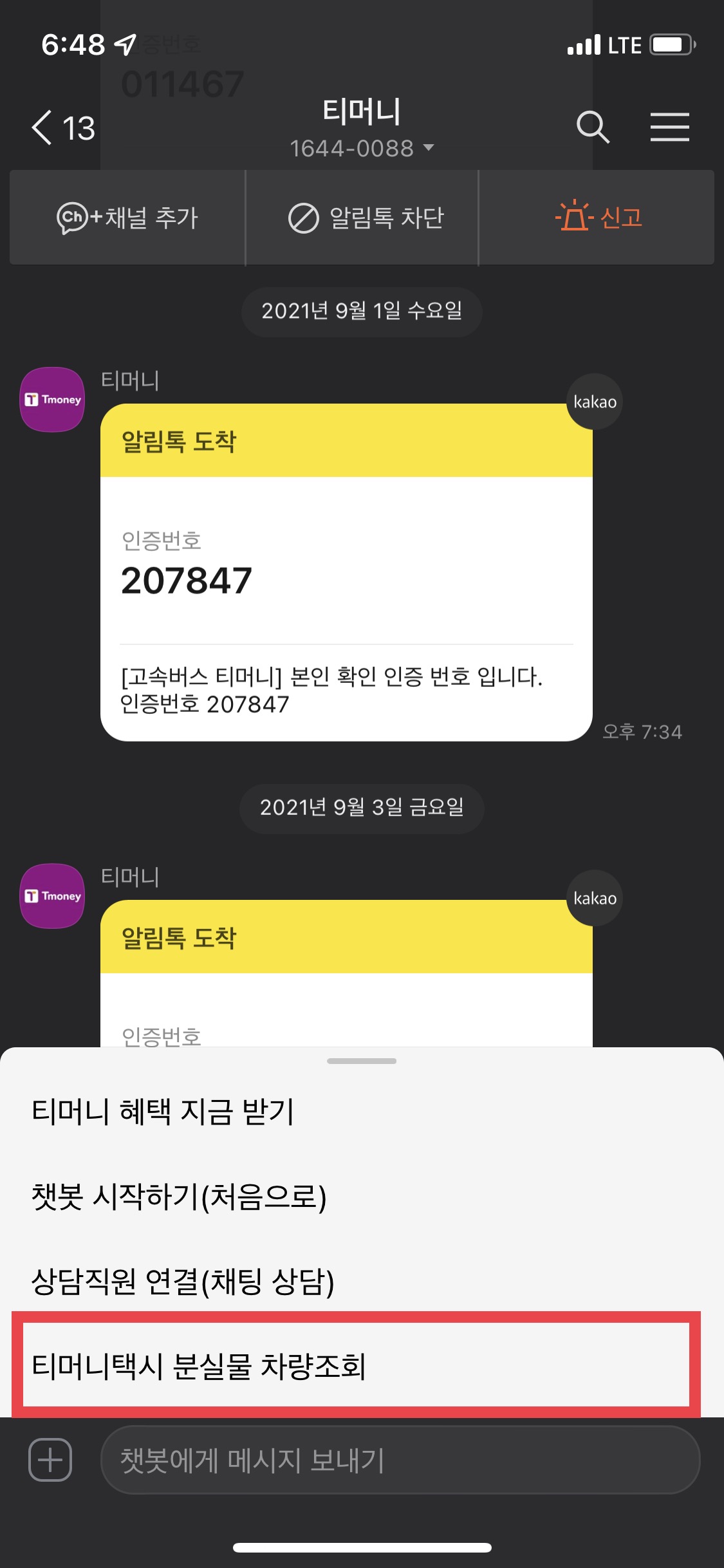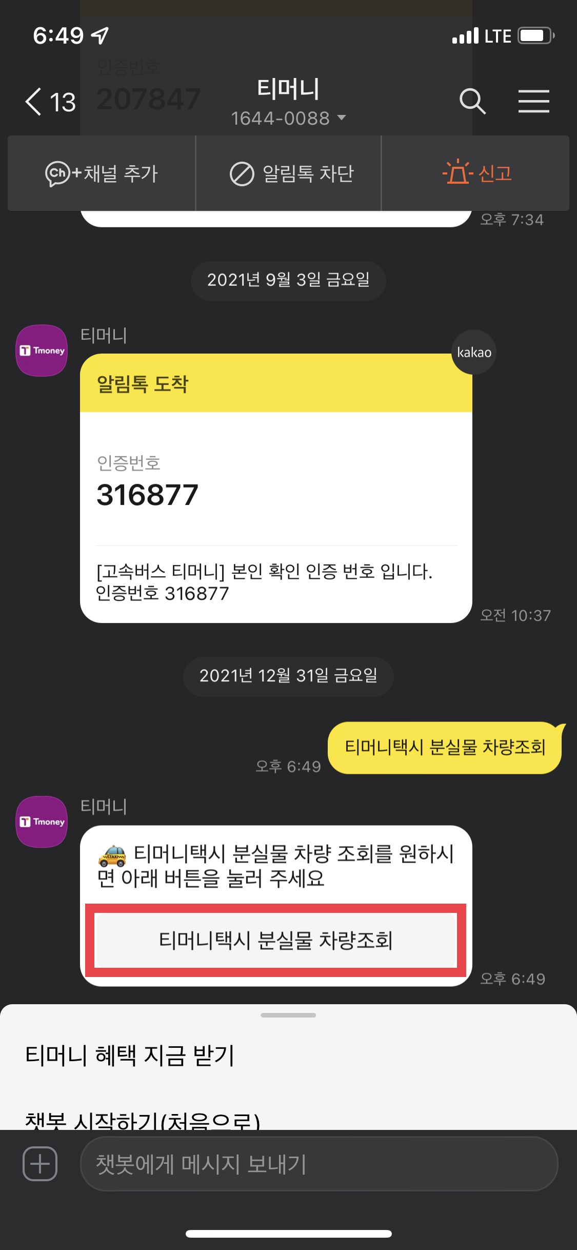티머니 채널 추가로 전화를 하지 않아도 편하게 확인하실 수 있습니다!