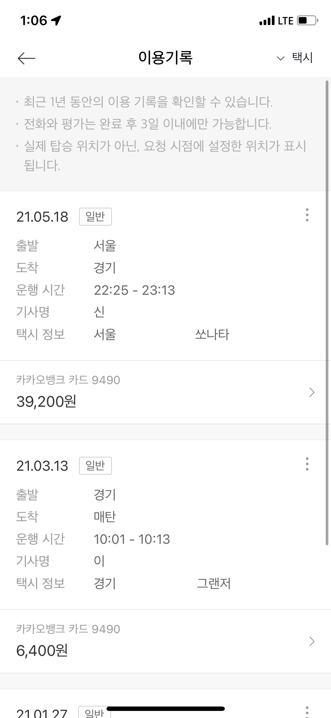 카카오 택시 탑승