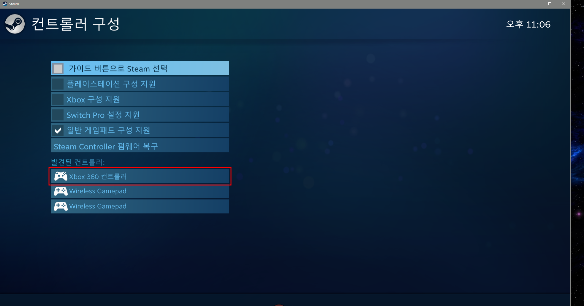위 과정을 제대로 따라 하셨다면 스팀에서 조이콘을 Xbox 360 컨트롤러로 사용하실 수 있으니 닌텐도 스위치 조이콘을 가지고 계신 분들은 굳이 Xbox를 구매하지 않으셔도 될 것 같습니다 ㅎㅎ