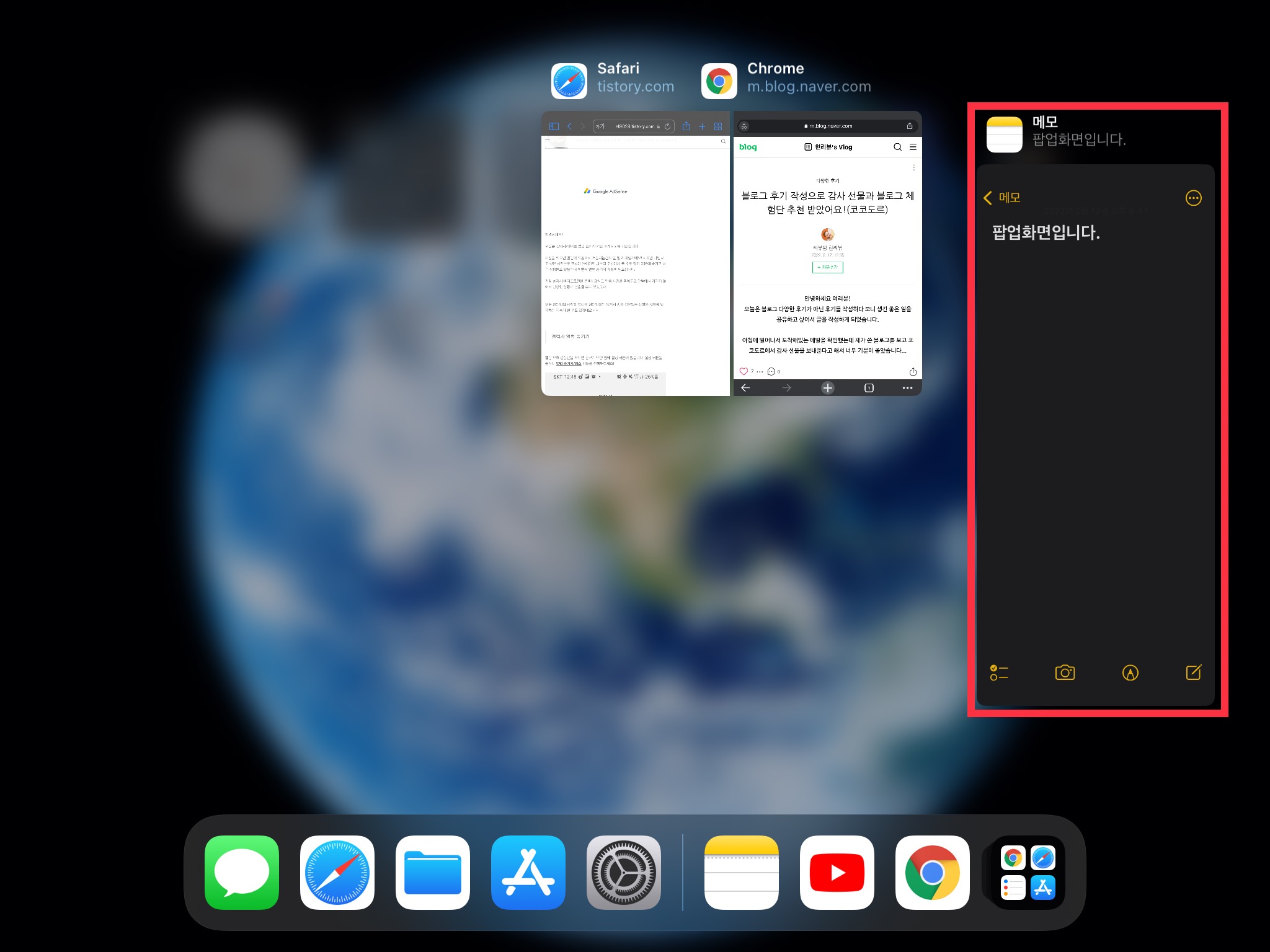 아이패드 신기능 소개(분할, 팝업 화면 사용 방법)